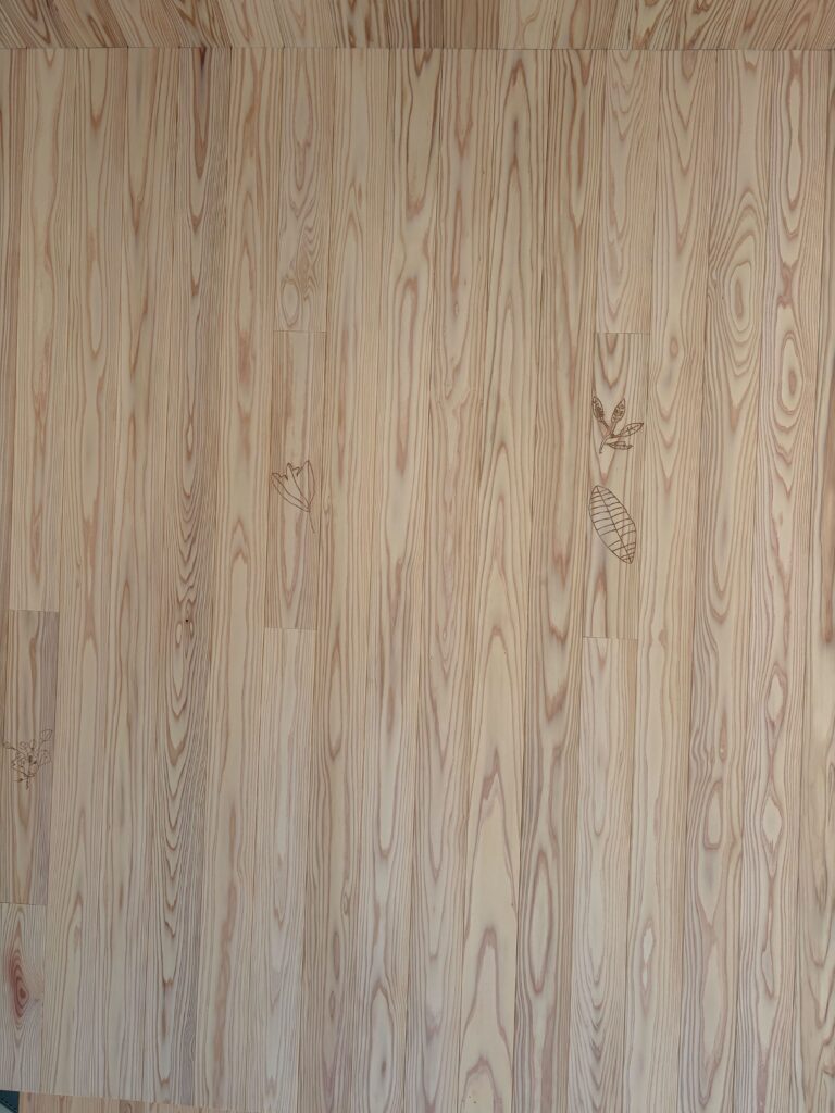 天井に使っている徳島県産杉の羽目板は赤みが少なくとてもきれいで、空間全体が明るく広く感じられる仕上がりに。想像以上の良さでした。